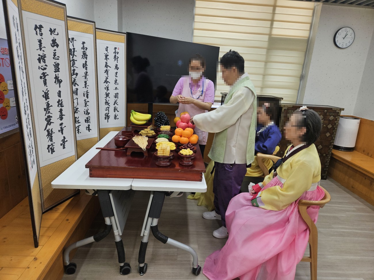 어르신들께서 한복도 입어보고 명절 분위기를 만끽하시며 차례상 앞에서 조상에게 감사하는 마음을 가지는 시간이었습니다.