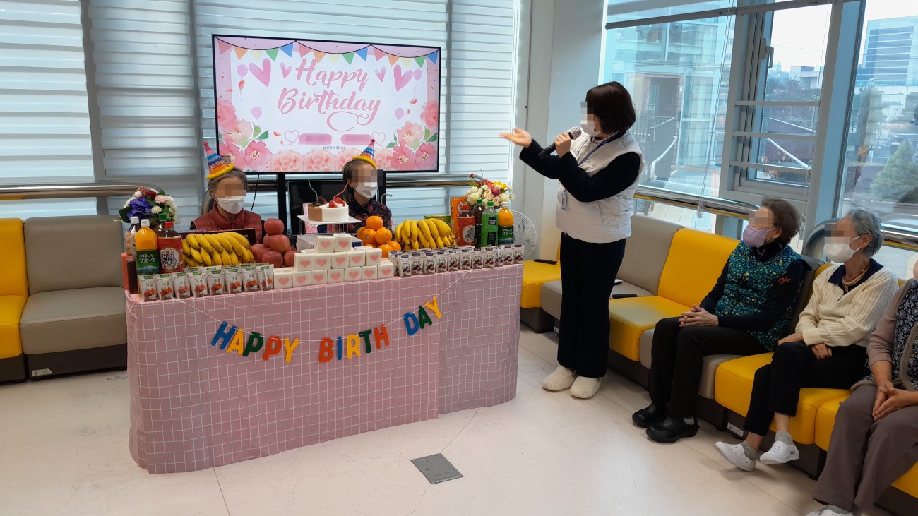 오늘은 어르신과 함께 생신 잔치를 진행하였으며