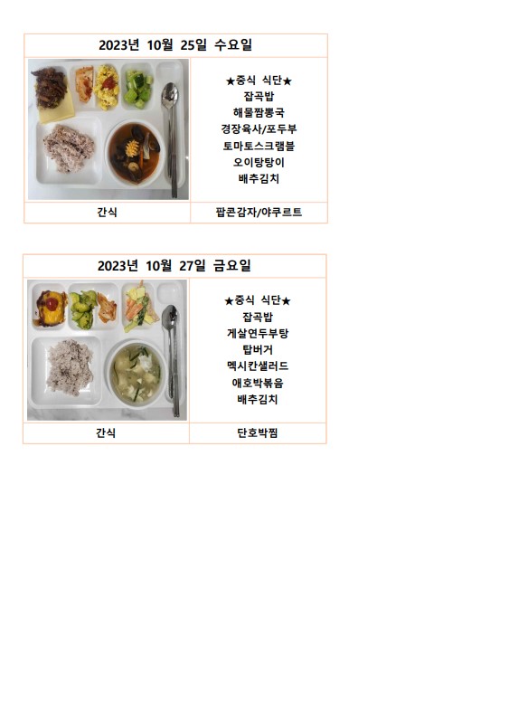 2023년 10월23일~10월27일 중식식단 페이지 정보 작성자 최고관리자 댓글 0건 조회 1,616회 작성일 23-10-27 17:34 목록 본문 . 이전글2023년 11월 06일~10일 식단 23.11.10 다음글2023년 10월16일~10월20일 중식식단 23.10.18 댓글 0 댓글목록 등록된 댓글이 없습니다.