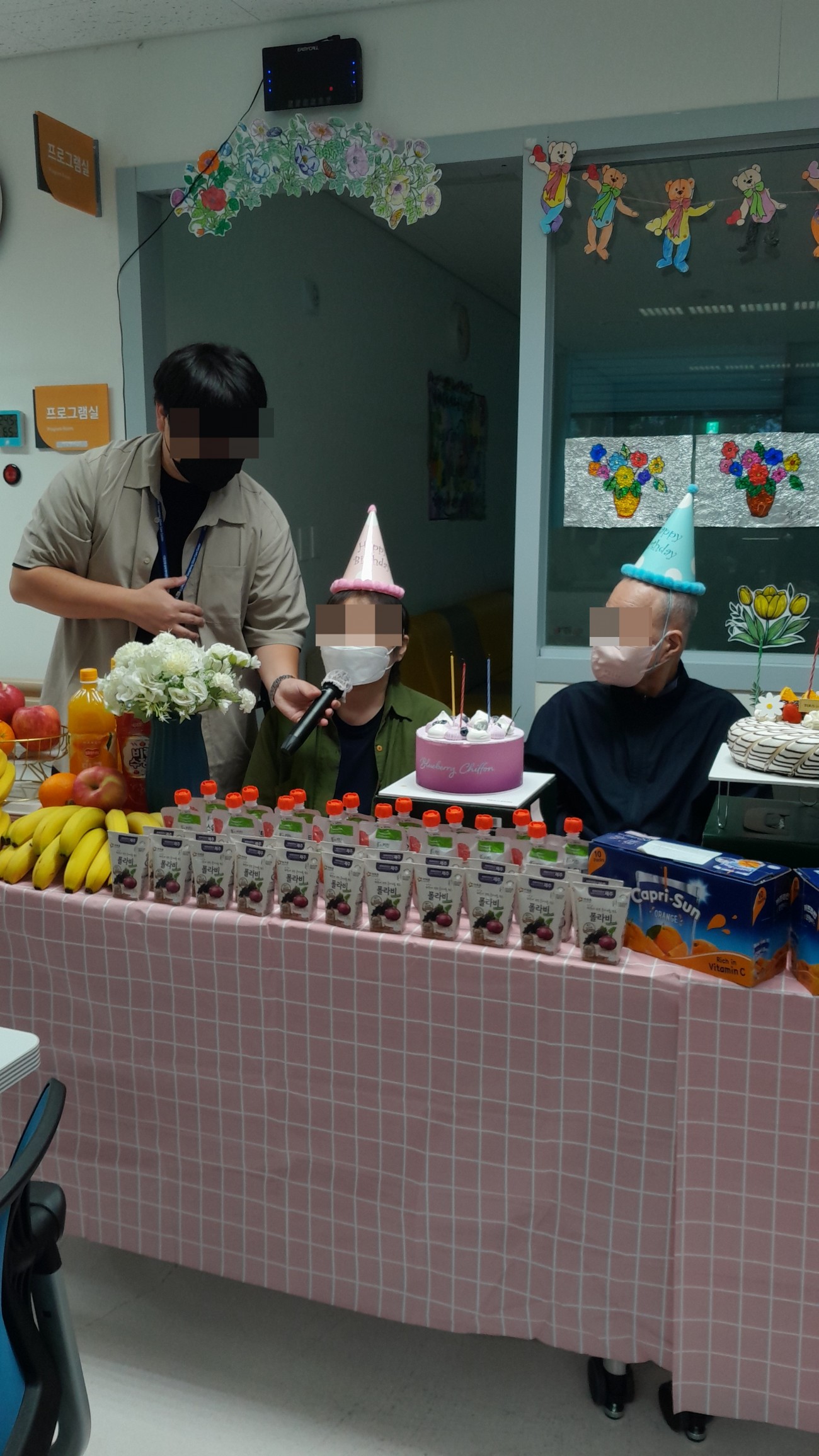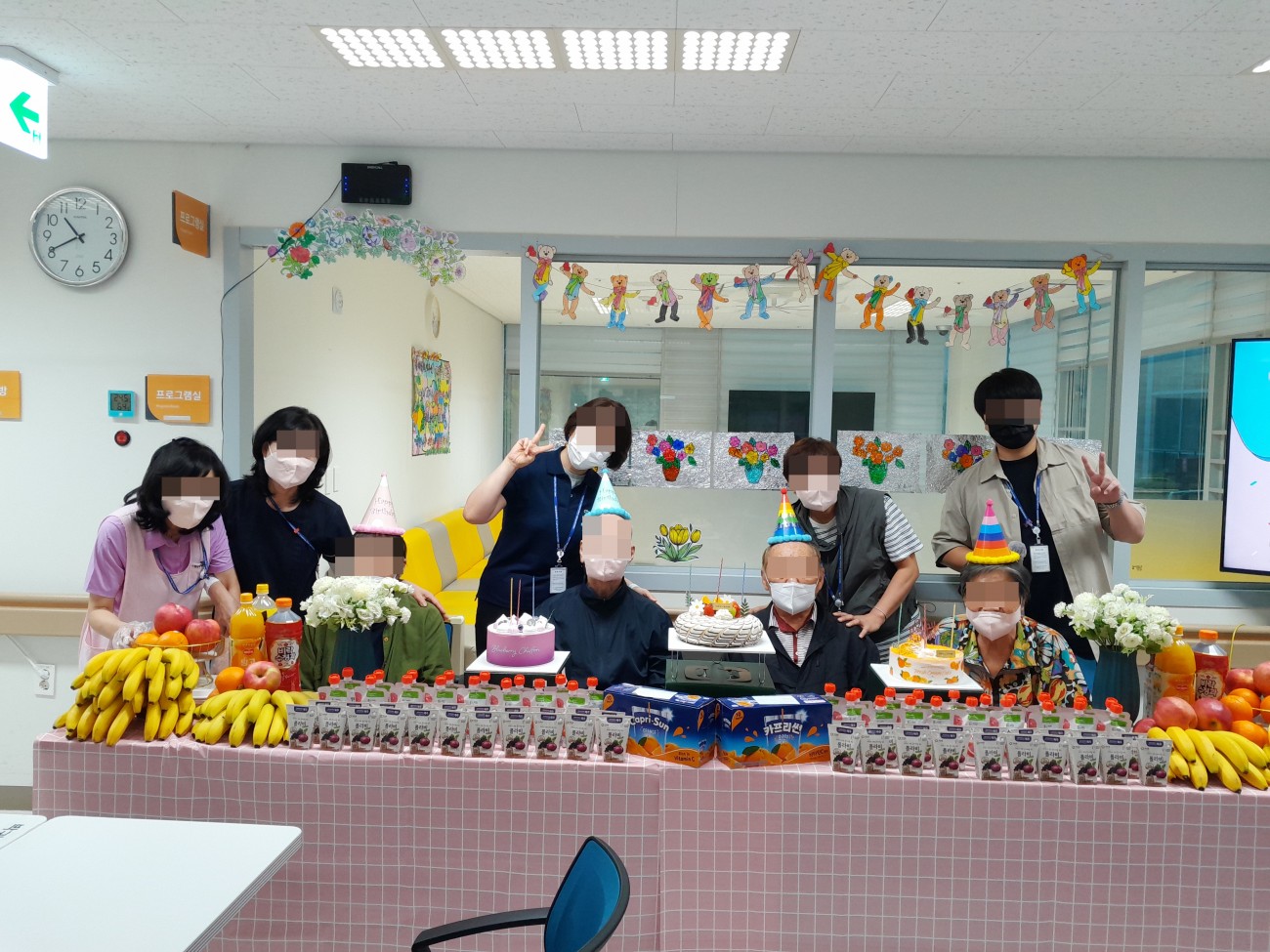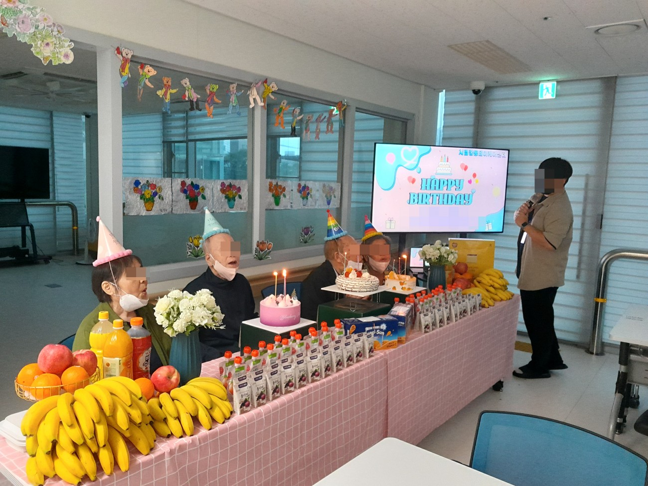 오늘은 어르신과 함께 생신 잔치를 진행하였으며