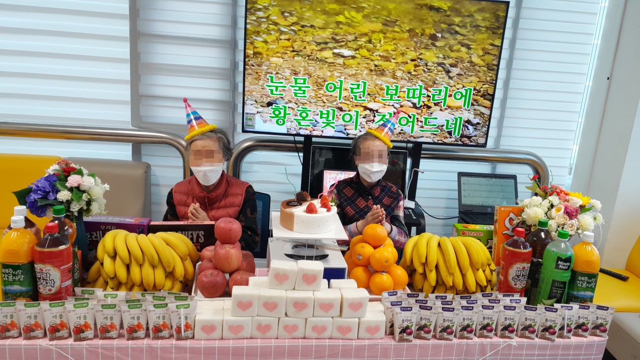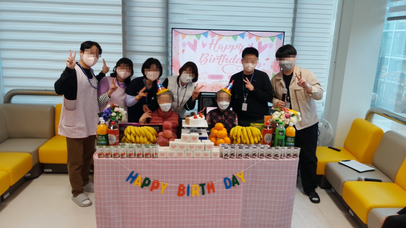오늘은 어르신과 함께 생신 잔치를 진행하였으며